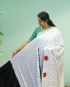 Monochrome Spun Cotton Saree with Elegant Peacock Pallu