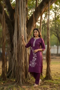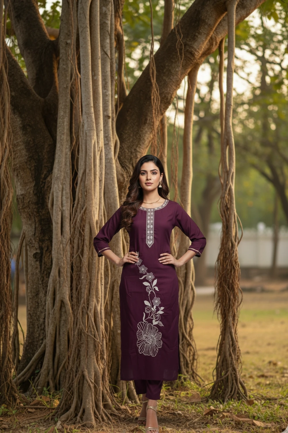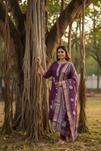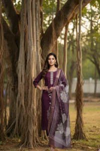 Color | Deep Plum/Purple with Silver/Gold Embroidery and Zari work |