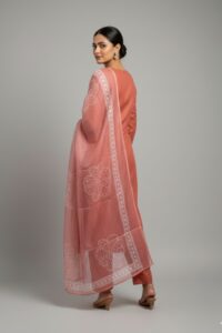 Elegant Taj cotton-silk suit featuring delicate all-over handwork on the kurti and a light, graceful Kota Doriya dupatta.