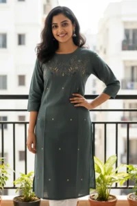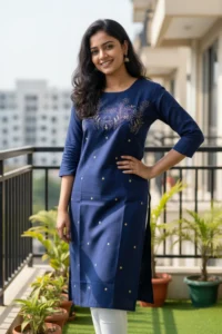 Style | Straight Fit Kurta with 3/4 Sleeves and Round Neckline |