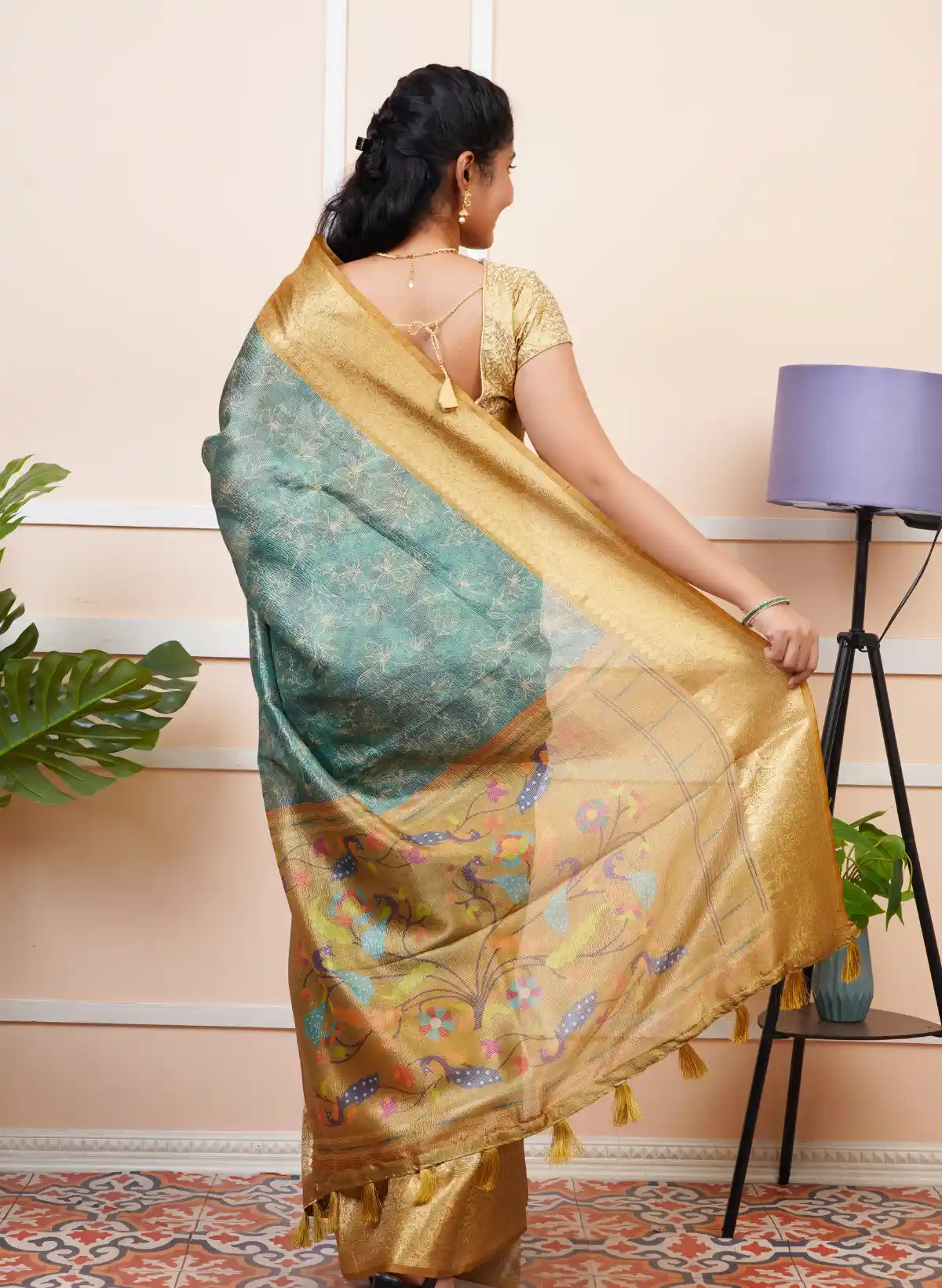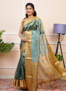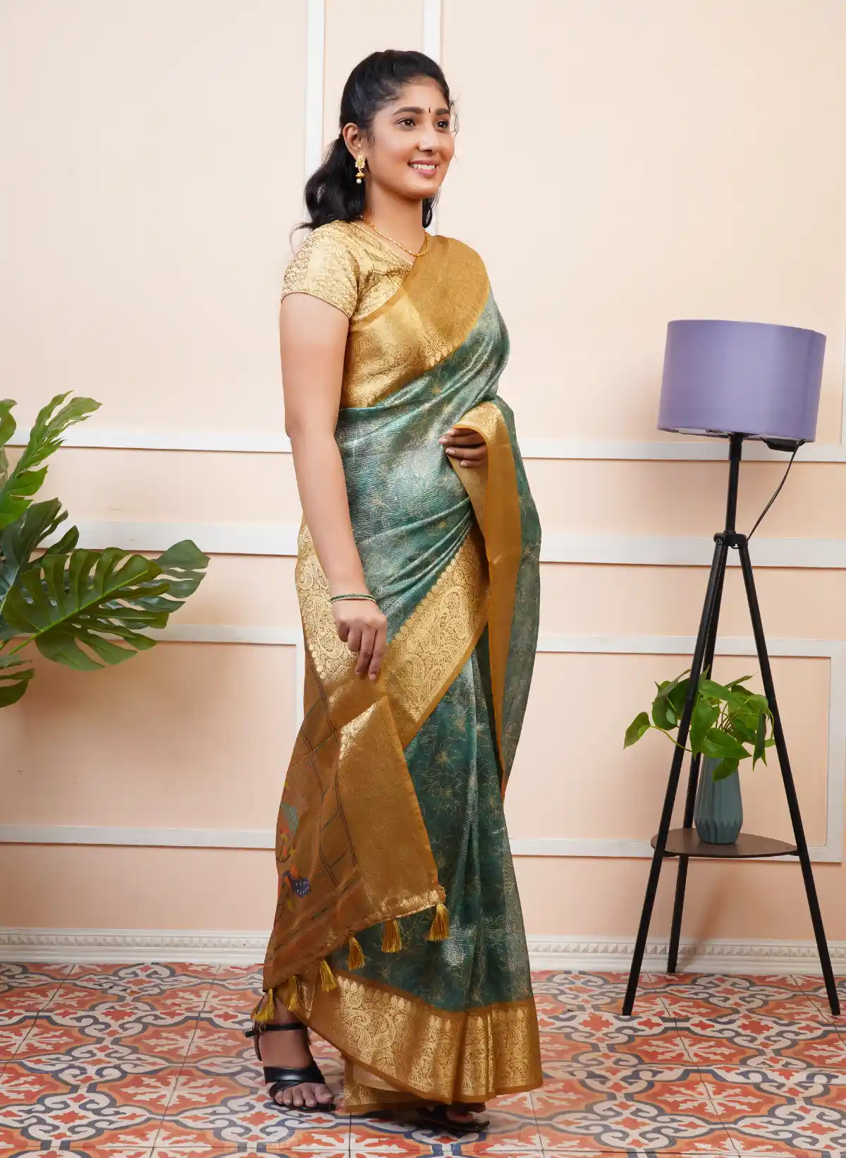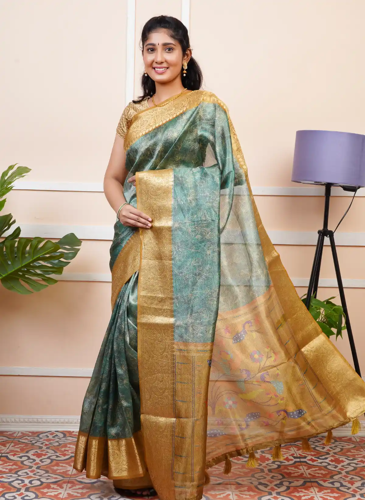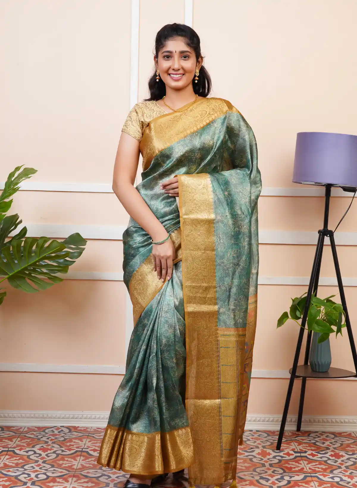Golden Glimmer Crush Tissue Saree(Blouse wearing by the model is only for sample purpose)