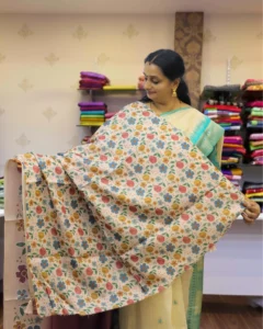 | Fabric Material | Hand work Matka Tussar Saree with Floral Print Border |