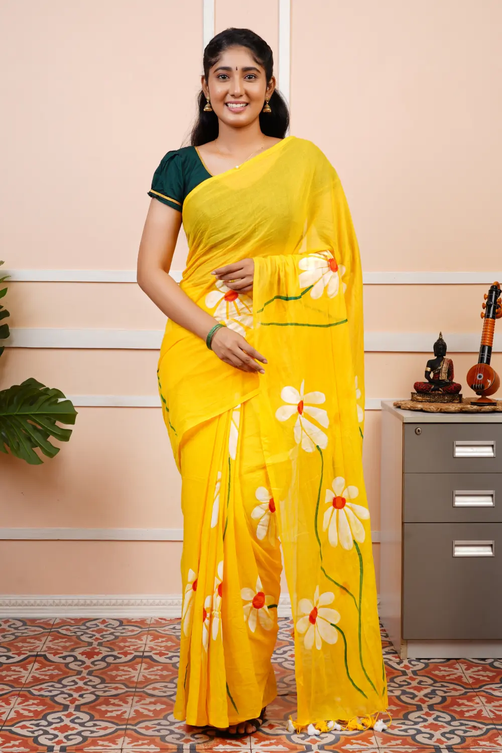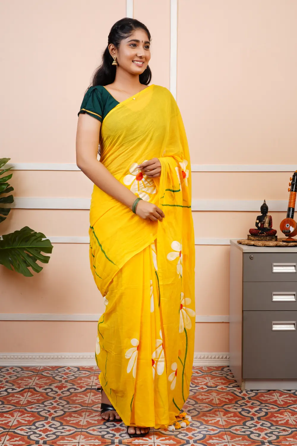 Fabric Material | Mul Cotton Saree, Floral Print Design |