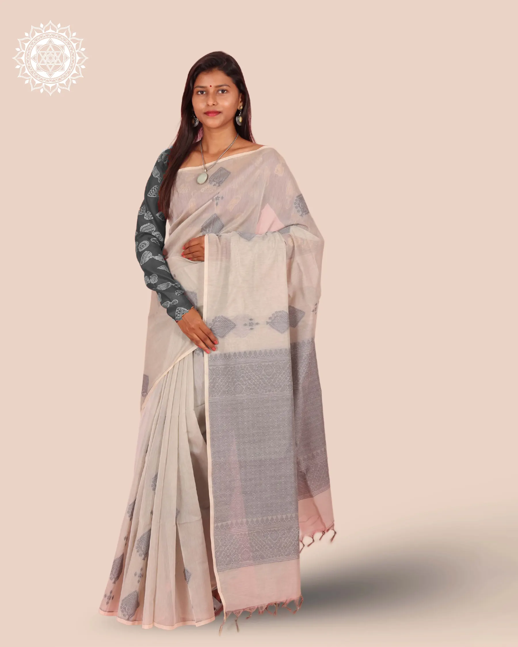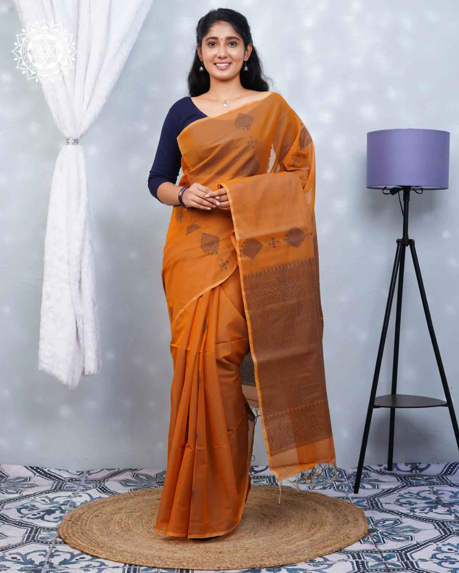 Exquisitely handwoven silk cotton saree showcasing timeless craftsmanship and elegant design. Lightweight with a luxurious texture—perfect for festive occasions, weddings, and sophisticated ethnic wear.