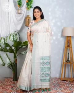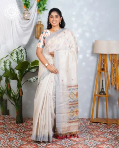 Timeless khadi cotton saree celebrating traditional craftsmanship with a modern twist. Breathable, lightweight, and elegant—perfect for cultural events, everyday wear, and graceful ethnic styling.