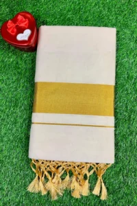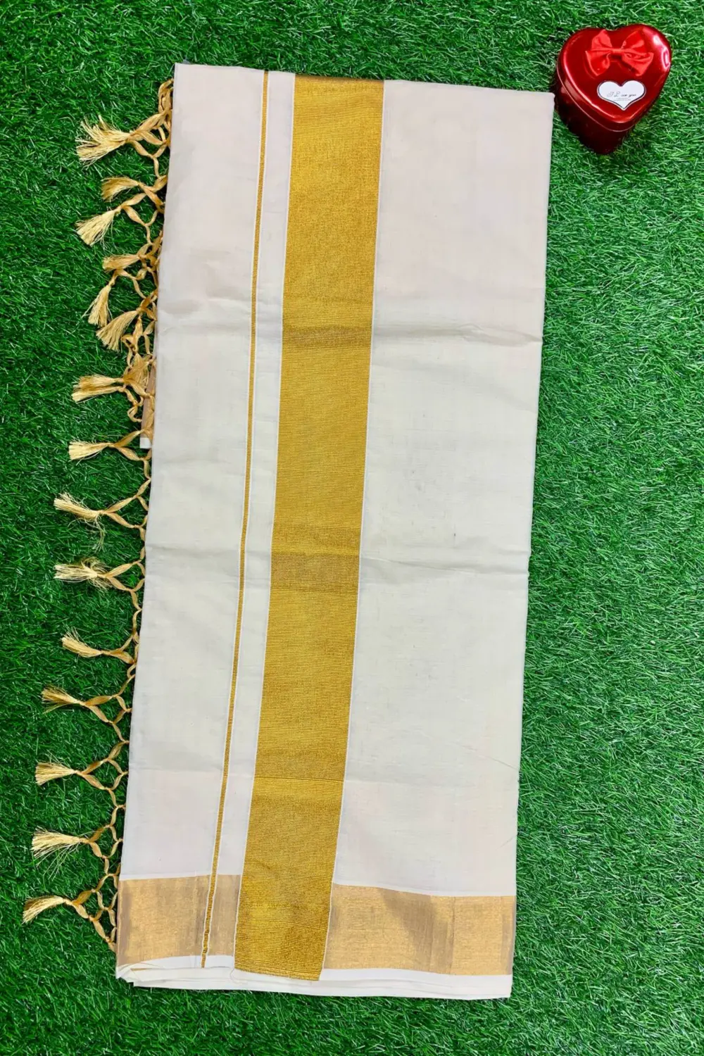 Kerala Saree Plain Border(Gold).(Blouse wearing by the model is only for sample purpose)