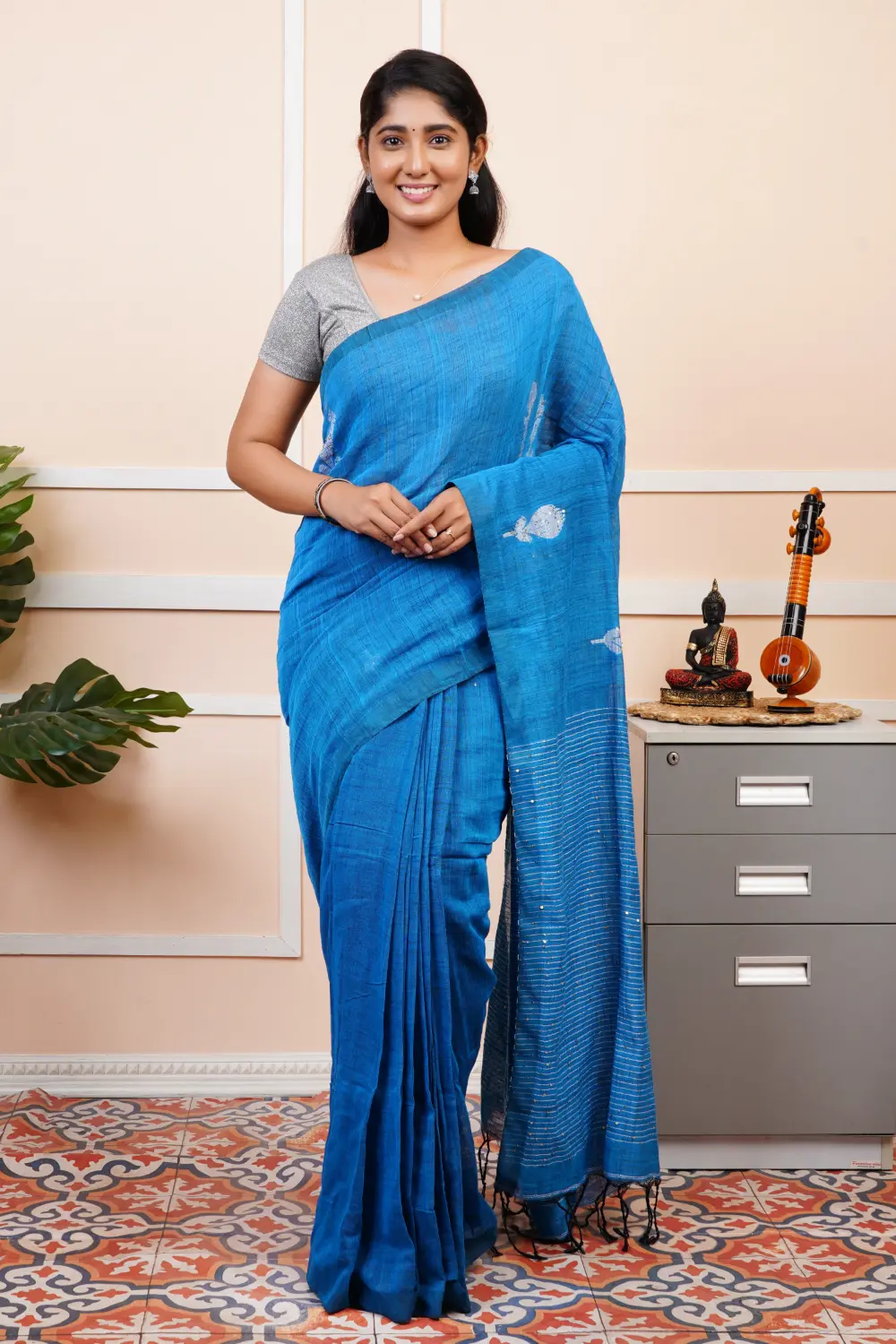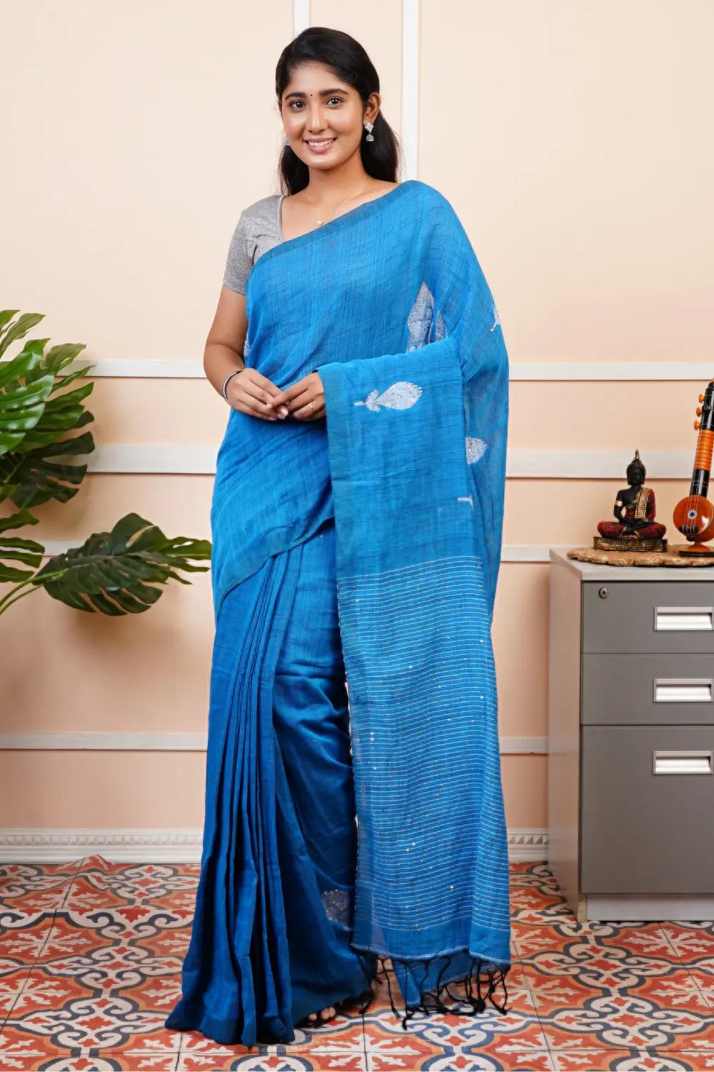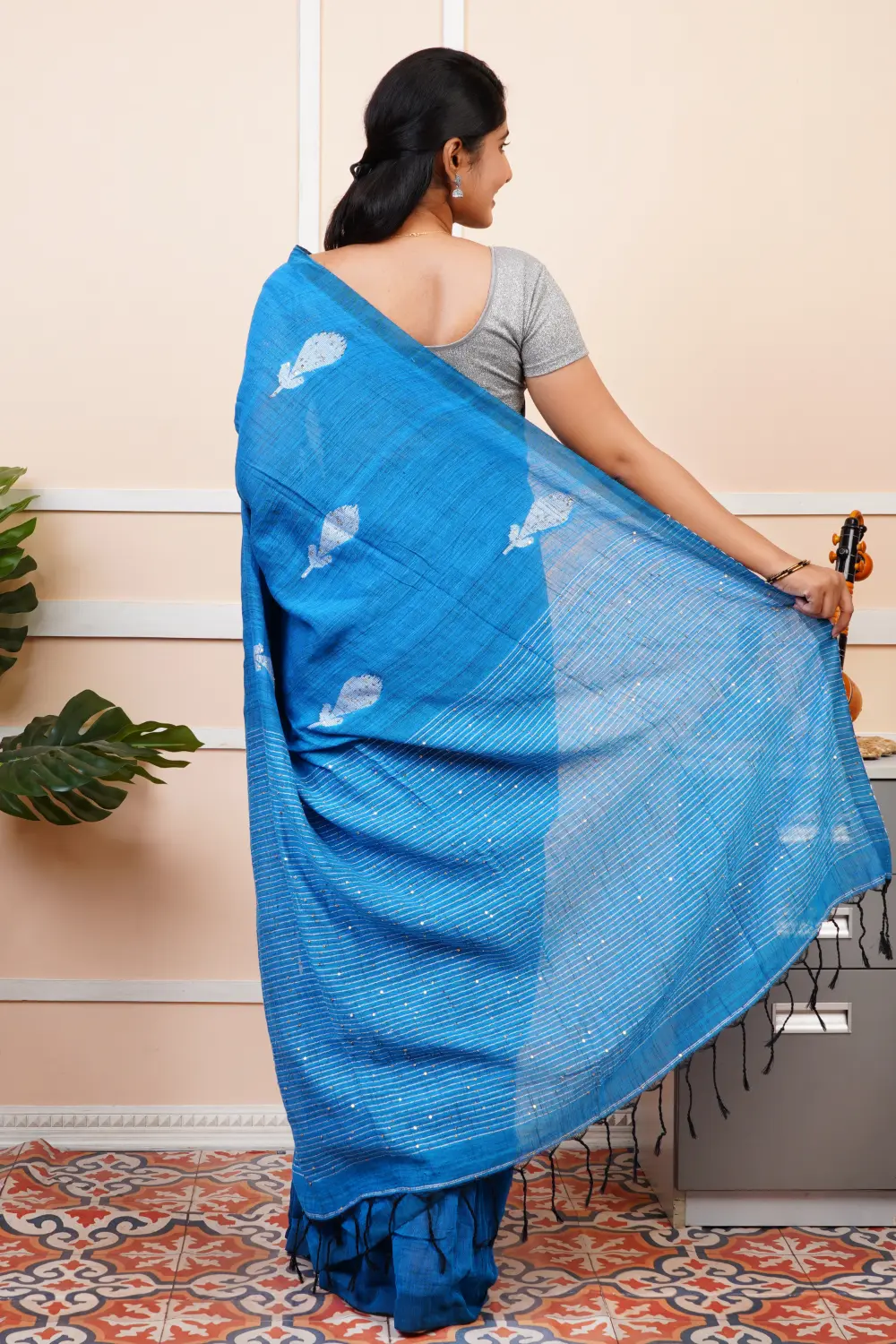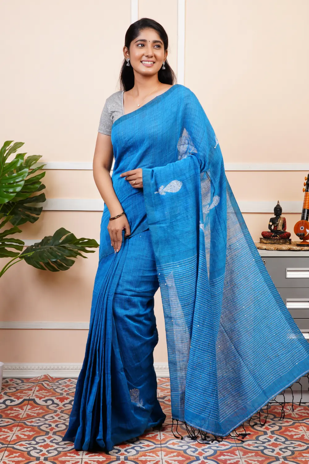 Linen Cotton Saree – Sequence Design(Blouse wearing by the model is only for sample purpose)