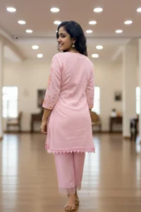 | Style | Straight-fit Kurta with 3/4 Sleeves and Coordinated Straight Pants |