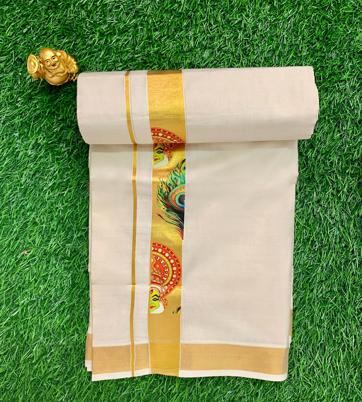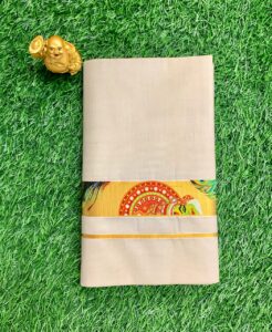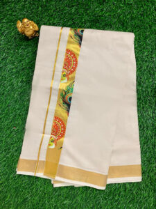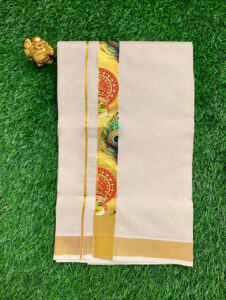 Kerala Kasavu Mundu with Golden Zigzag Border – Traditional Design”
