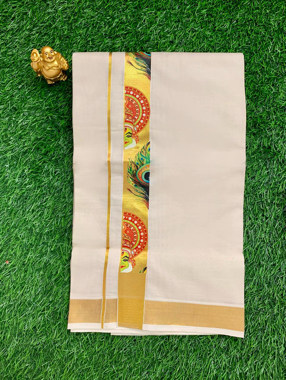 Men’s Elegant Kerala Kasavu Dhoti with Floral Zari Border