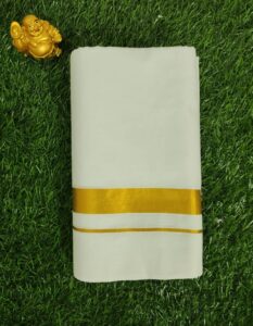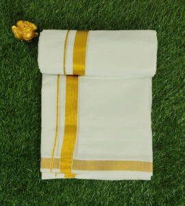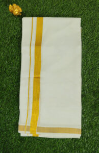 Kerala Kasavu Mundu with Golden Brocade – Traditional Elegance