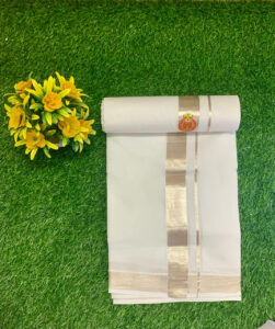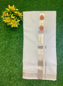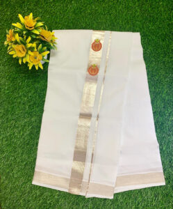 Men’s Classic White Kasavu Dhoti with Diagonal Zari Border
