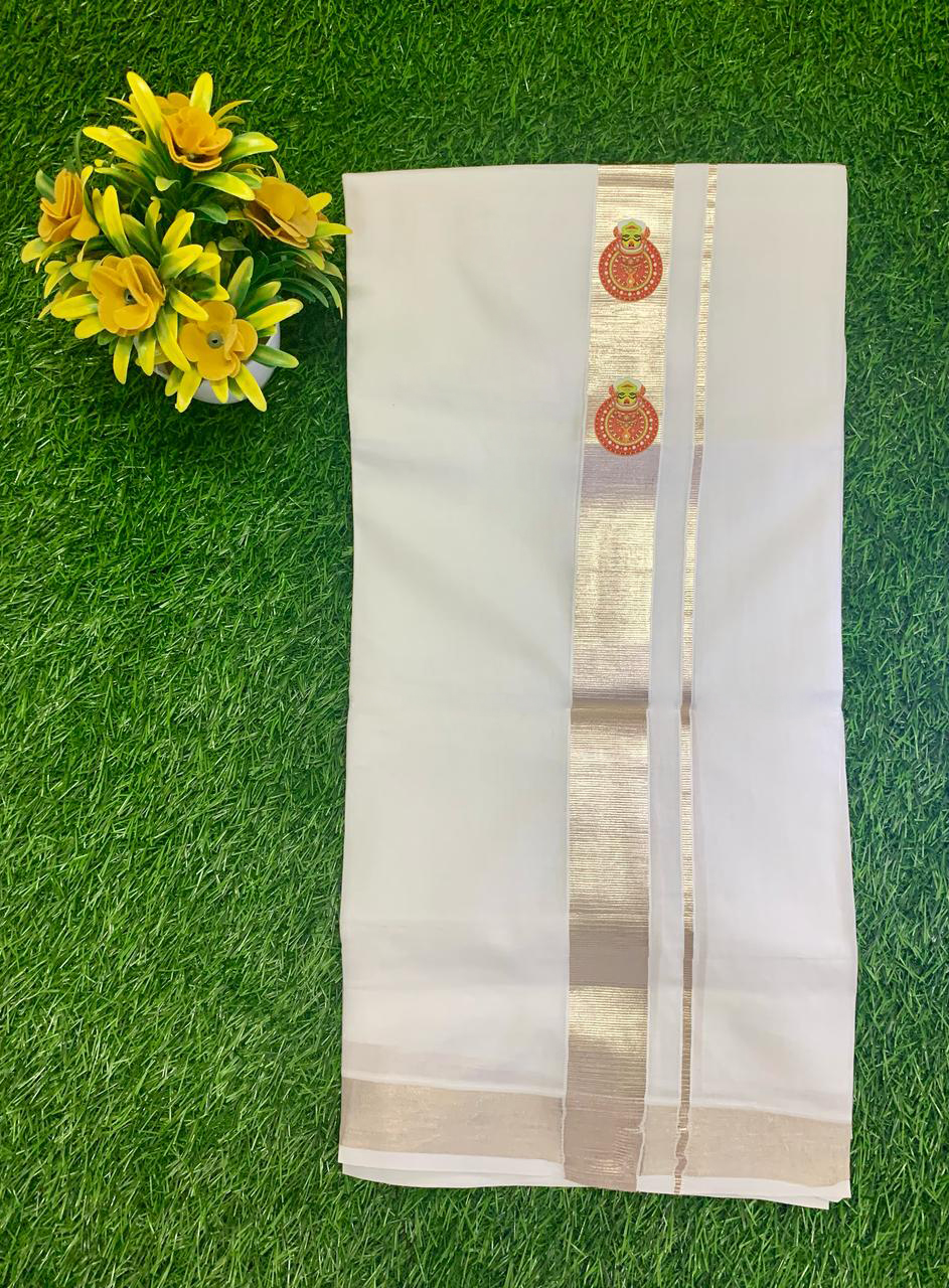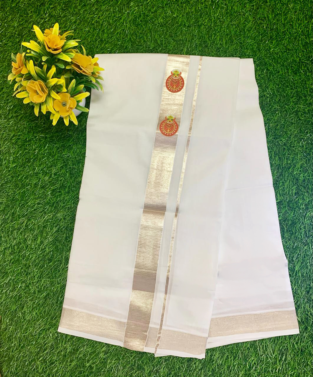 Men’s Premium White Kasavu Vestis with Broad Gold Border