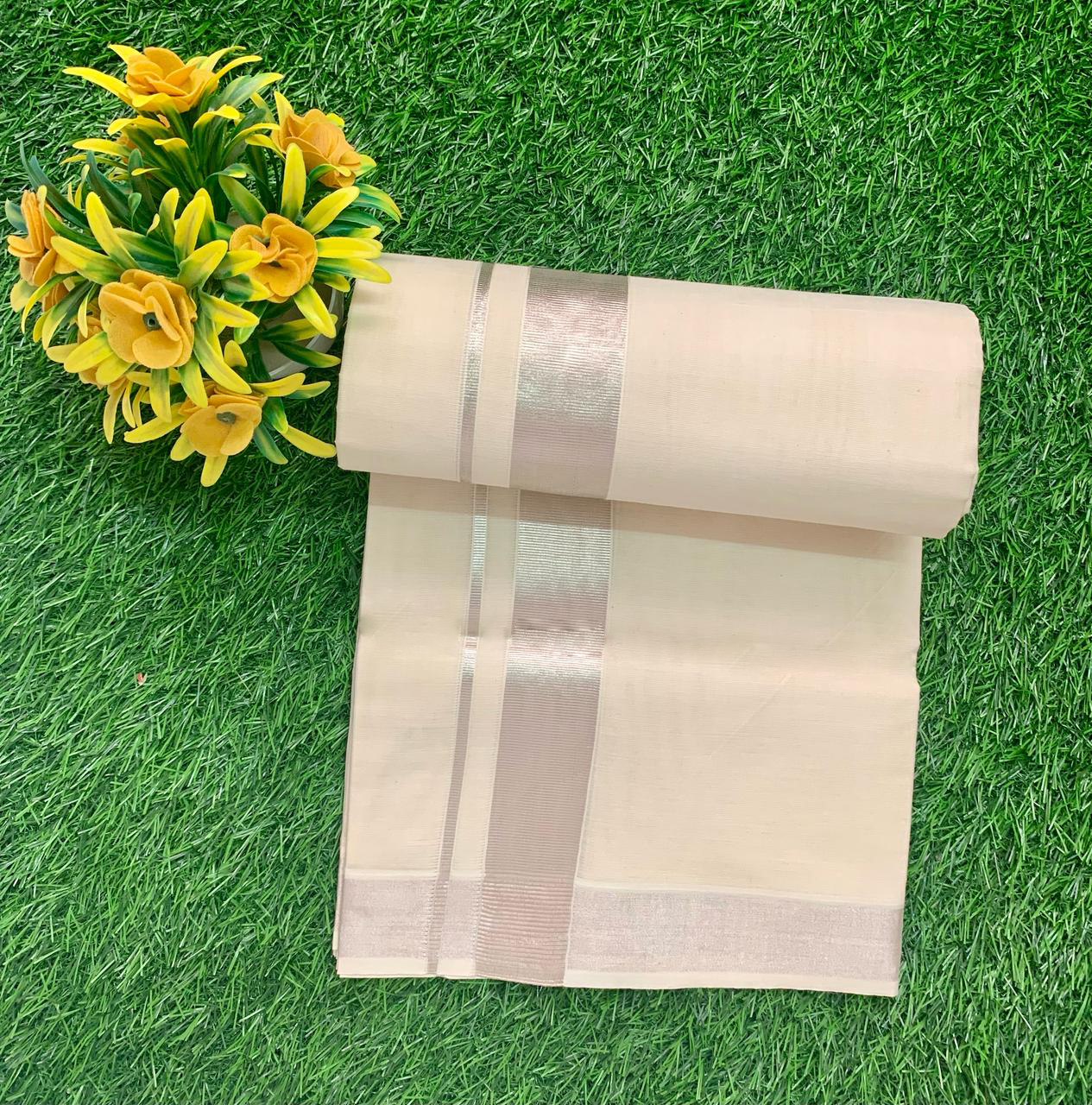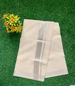 Men’s Kerala Mundu with Silver Kasavu Border – Traditional Elegance