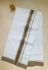 Men’s Kerala Mundu with Silver Kasavu Border – Traditional Elegance