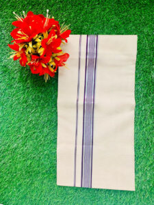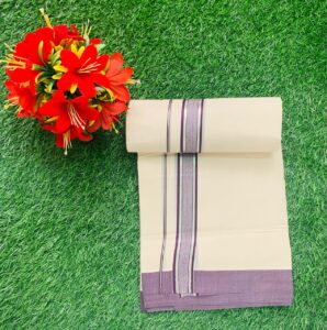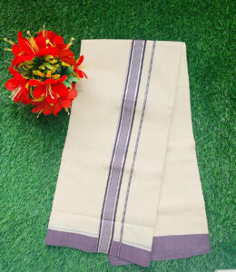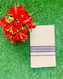 Kerala Kasavu Mundu with Golden Zigzag Border – Traditional Design”