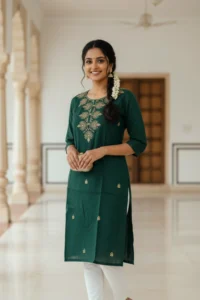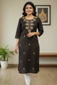 Style | Straight Fit Kurta with 3/4 Sleeves and Round Neckline |