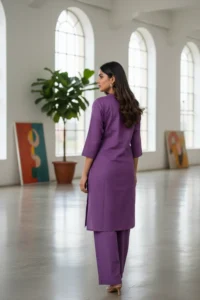 Purple Roman Silk Embroidered Co-ord Set