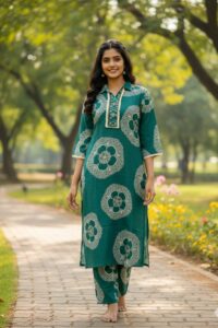 High-Quality Cotton Print A-Line Suit Set